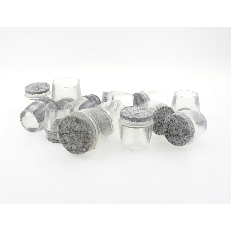 - Pack of 16 transparent ferrules/tips with integrated felt pad for use on table, chair, and other tubular furniture legs