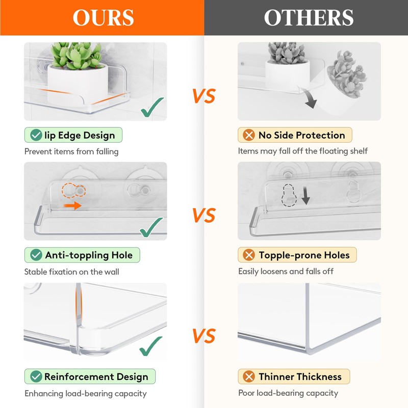 - Easy Installation: Installation is hassle-free with no drilling required. Simply clean the surface with a wet wipe or alcohol pad, then firmly press the suction cups onto the window. This quick and easy setup allows you to enjoy your new shelf in no time