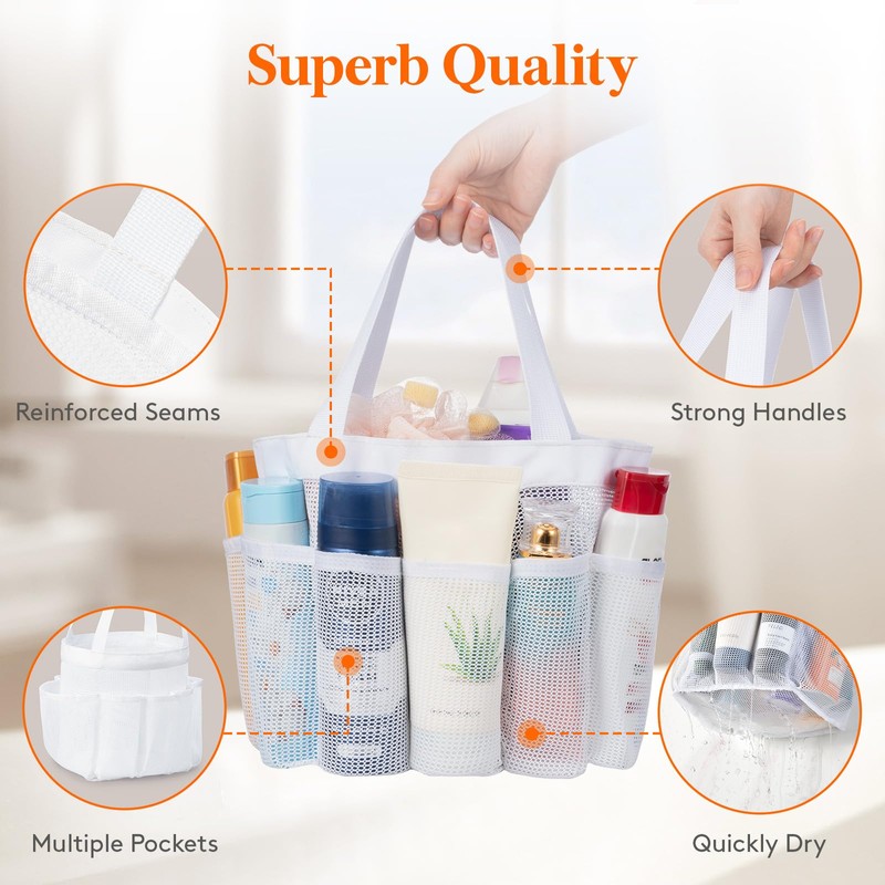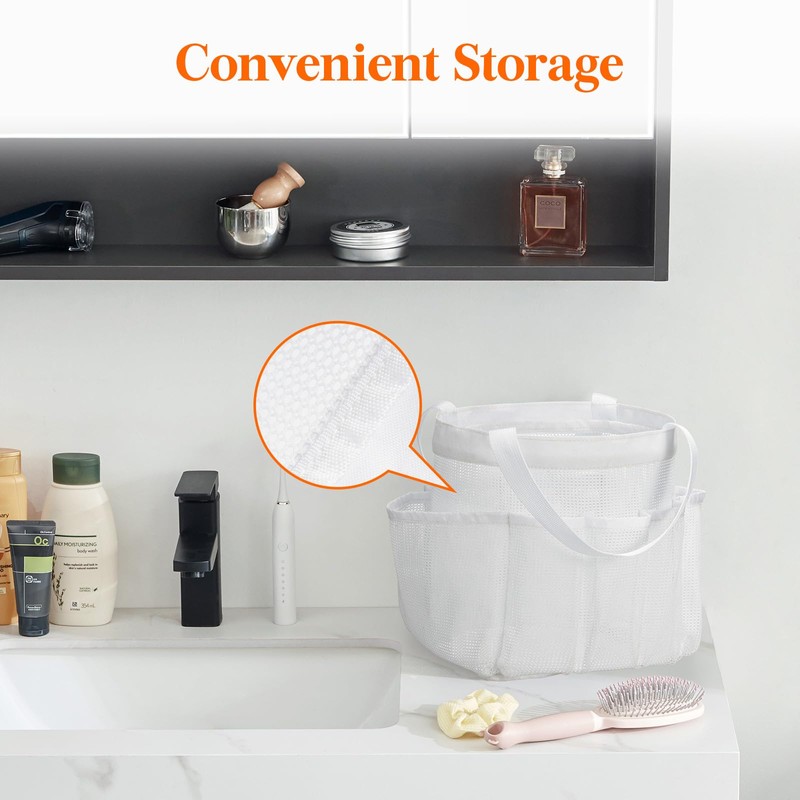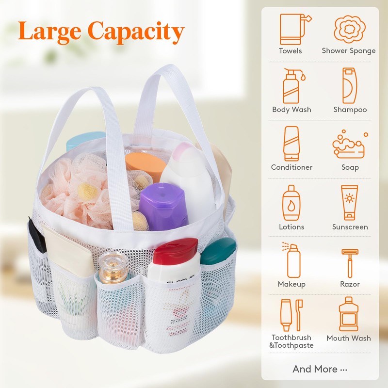 - Versatile Use: This versatile mesh shower caddy is perfect for use in college dorms, bathrooms, gyms, travel, camping, beaches, and more.