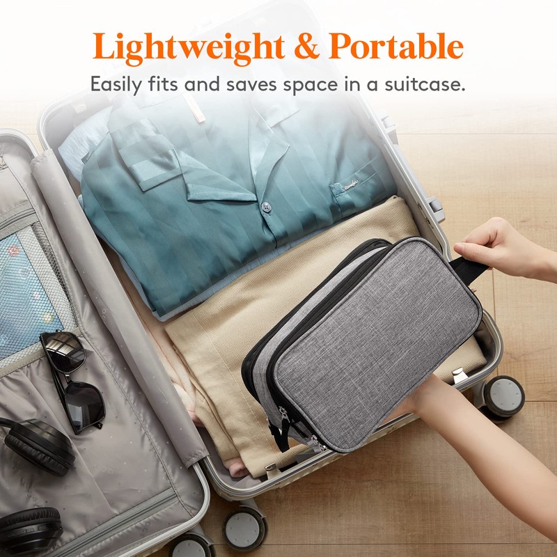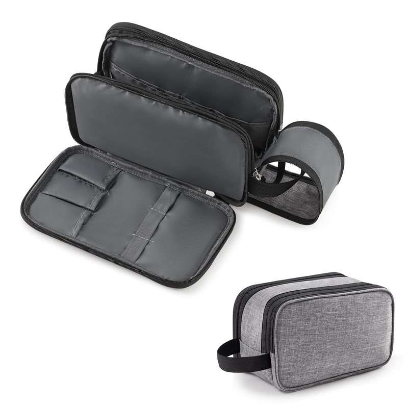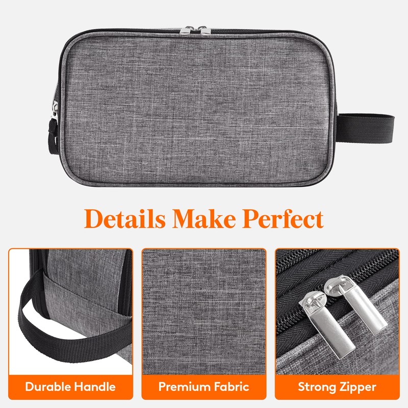 - Double Zipper Design: Double zippered opening for sturdy, quick access to the main compartment. Simply pull the attached zipper to fully open the large opening of the toiletries bag and easily retrieve the items inside.