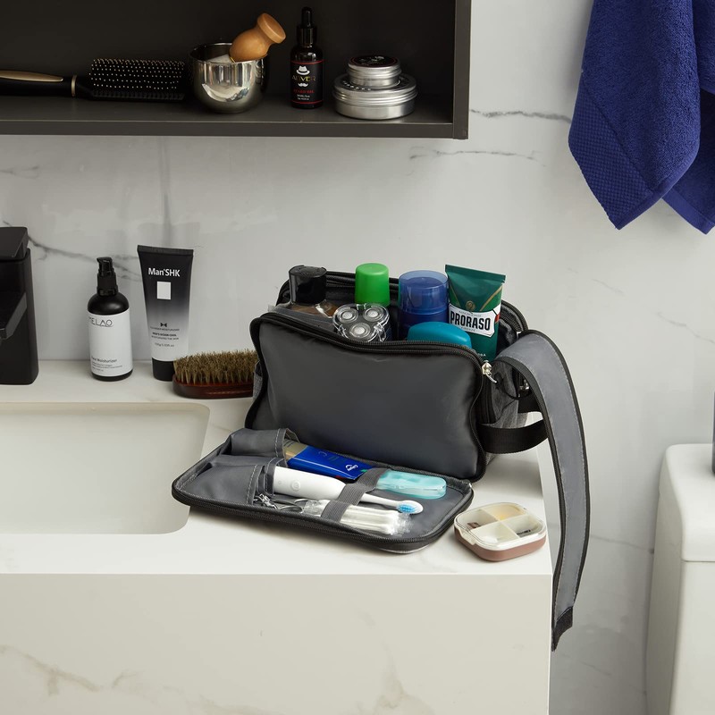 - Multi Use: With a handle on the side, the dopp kit for men can be carried or hung with a single hand. Simply put it into a backpack or suitcase when traveling or going on a business trip. Perfect for daily use at home, long trips, gym showers, or other outdoor activities.