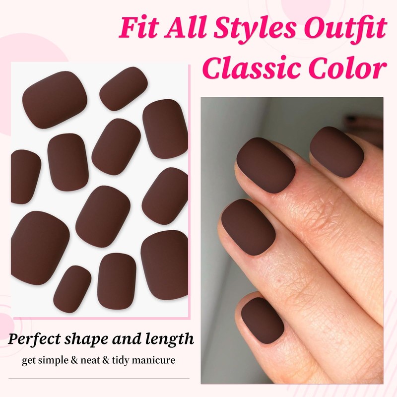 - Best acrylic press on nails short length: This short square press on nails looks elegant and charming with matte finish design. Pre-colored pink stick on nails save your money to salon and also save your time to wait for nail polish dry. Press on short nails tips is ready to wear and can be press on in 5 minutes, for fit better, your normal nails should be shorter than press on short nails. Thick short press on nails square will not affect your normal life, you are free to do anything.