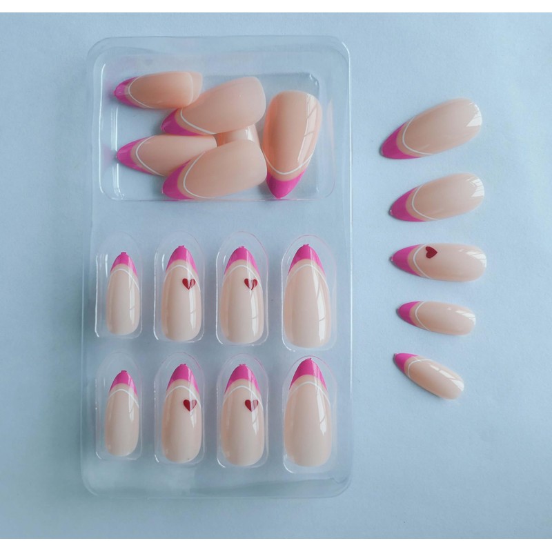 Valentines nails with chraming heart design very festive and dreamy, this heart press on nails is perfect for celebrating the valentine's day, so dress up and get into the festive spirit with our valentines nails.