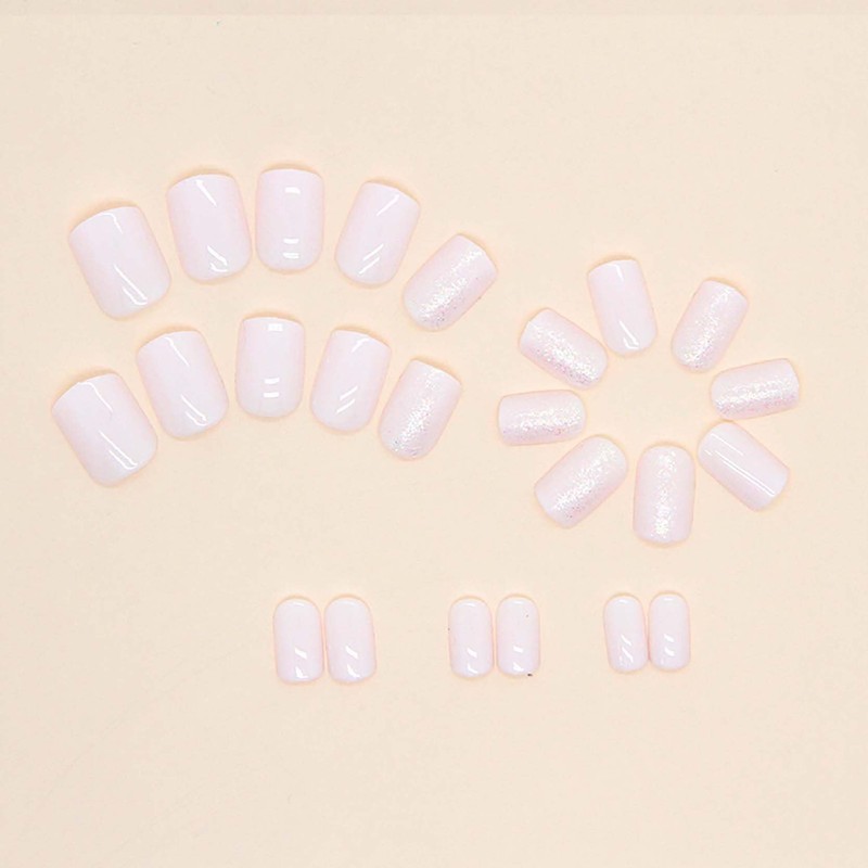 Lifextol Press on Nails Short Fake Nails Short Square Stick on Nails Press ons with Adhesive Tabs, 24pc White Nails Press on Natural with glitter