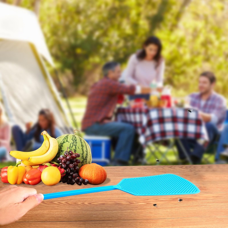 - ECO&SafetyOur Plastic-made Fly Swat won't leave scars on your furniture like metal-handled fly swatters. And without electricity, you don't have to worry about hurting your kids like an electric fly swatter.