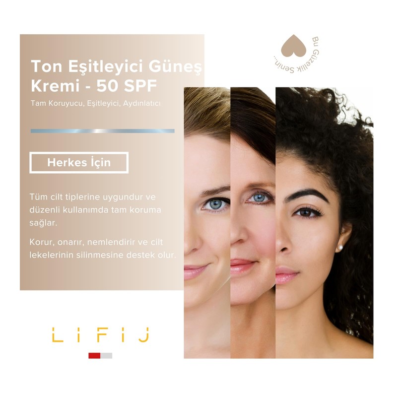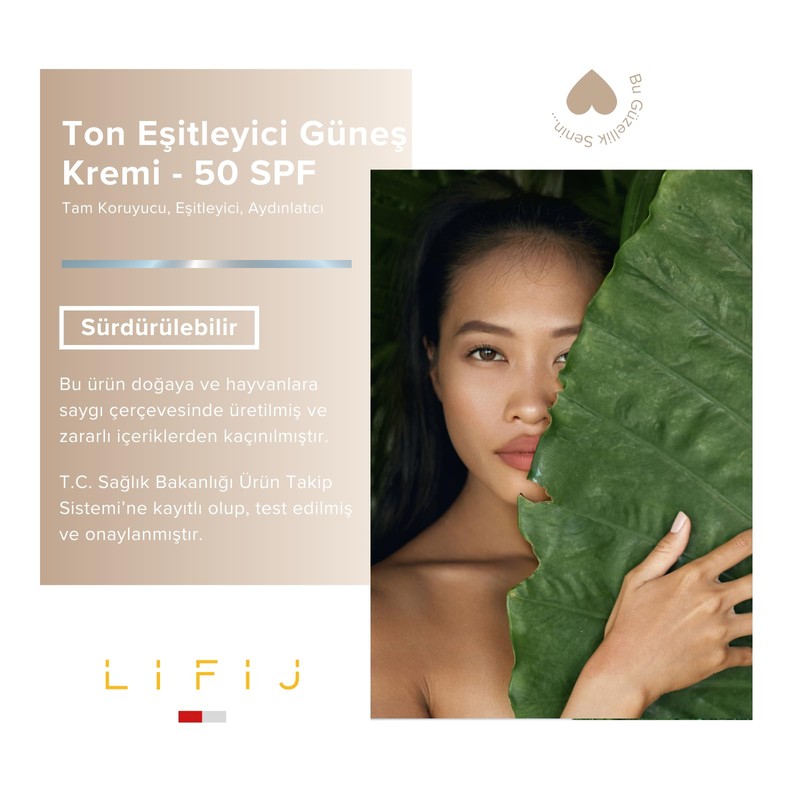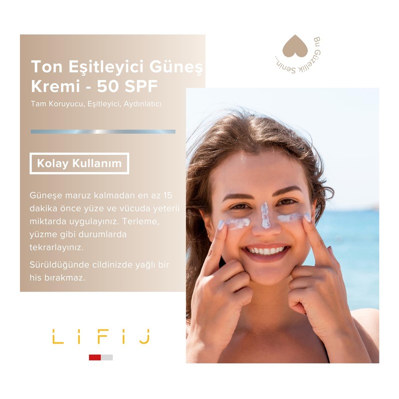 Lifij Ton Eşitleyici Güneş Kremi 50 SPF, Yüksek Güneş Koruması, UV Işınlarına Karşı Uzun Süreli Koruma (75ml) (Ton Eşitleyici)