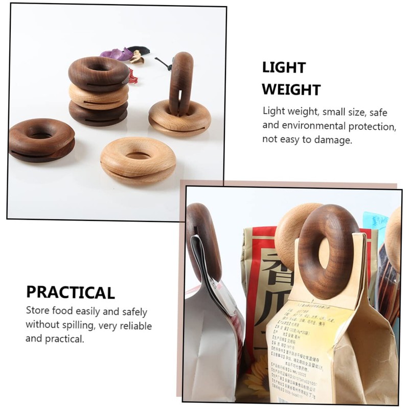 LIFKOME 2pcs Wooden Sealing Clip Snack Bag Walnut Round