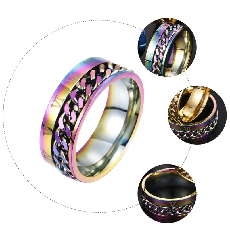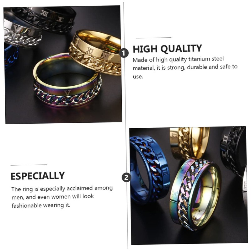 LIFKOME Stylish Roman Numeral Ring in Titanium Steel Unisex Chain Ring for Men