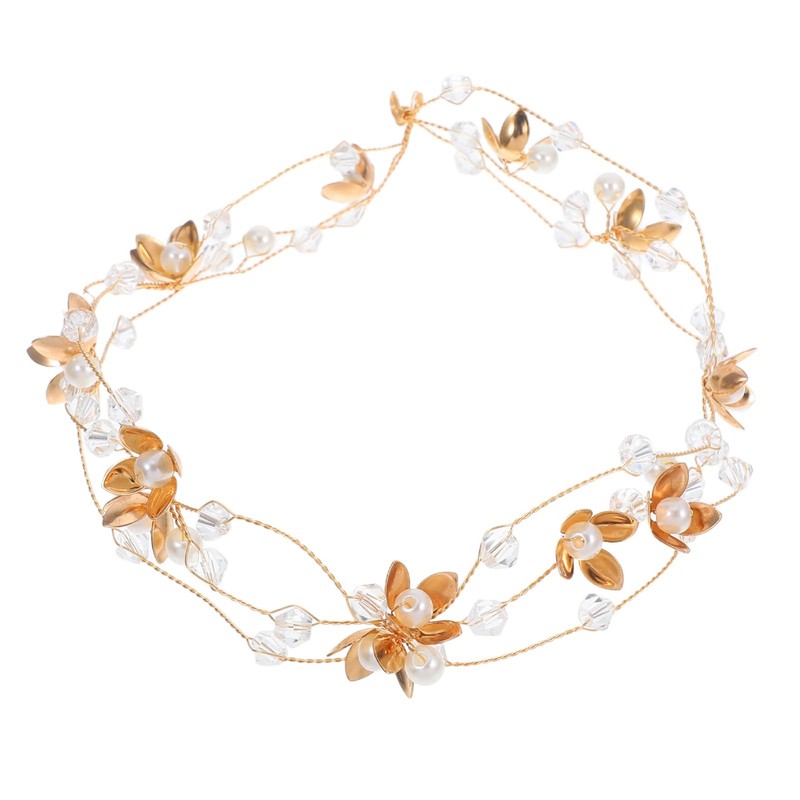 LIFKOME ブライダルパールフラワーヘッドバンドウェディング ビーズヘッドピースヘアアクセサリー用装飾パーティージュエリー(ゴールデン/シルバー)