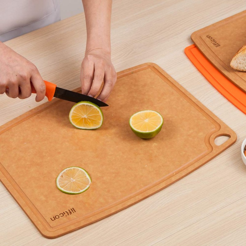 Liflicon Non-Slip Cutting Board Wood Fiber Good for Meal Prep Kitchen,Bar and Serving Tray 11.81”*9.25”*0.24” Eco-Friendly,Dishwasher Safe Natural color with Juice Groove