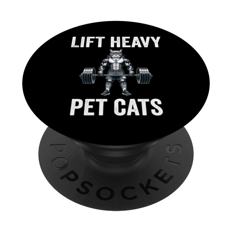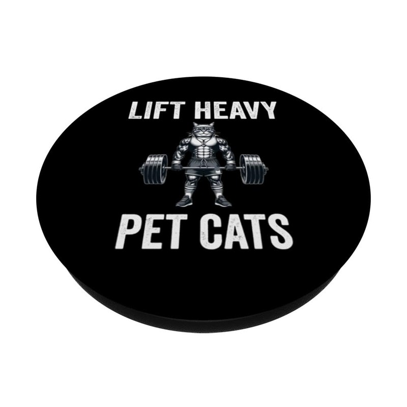 Lift Heavy Pet Cats Funny Gym Workout Weight Lifter PopSockets with Interchangeable PopGrip