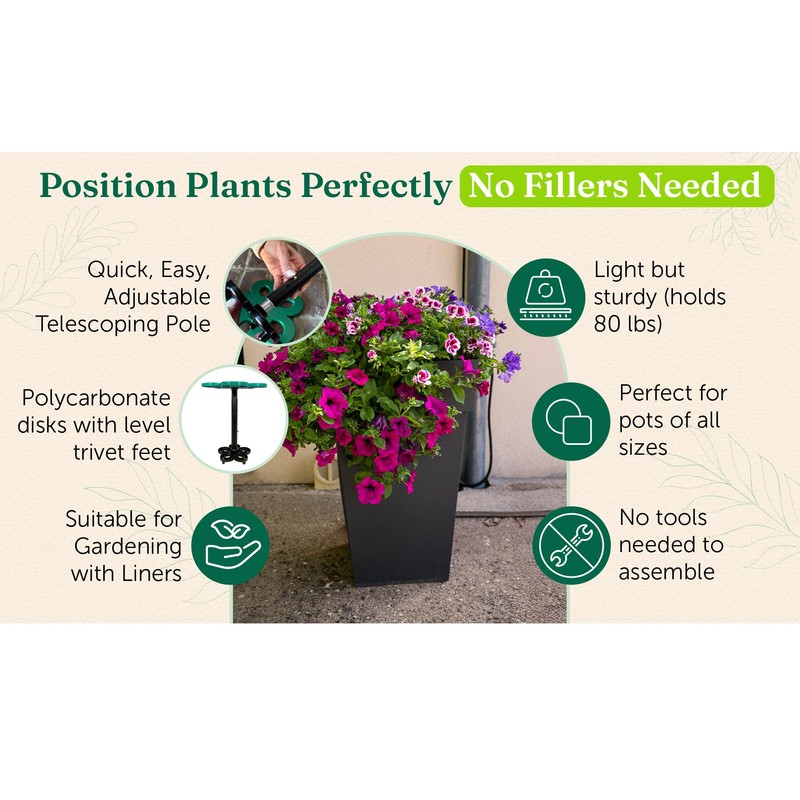 - ROBUST & ADJUSTABLE C Our strong, long-lasting planter filler insert comes with an extendable telescoping pole suitable for both real and faux plants. It can be adjusted to fit various plants and pots.