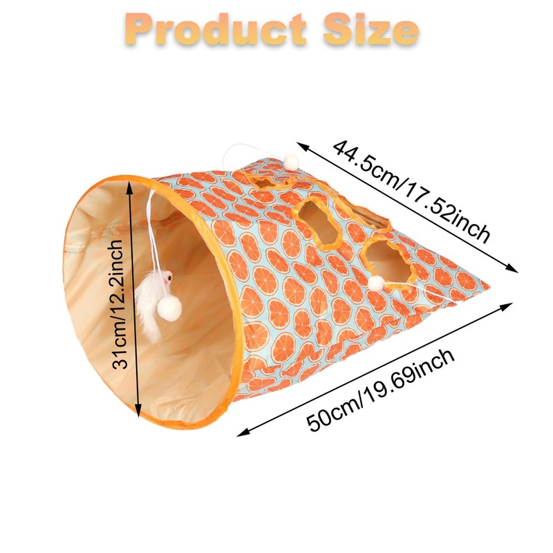 - 【Collapsible and Portable】The cat tunnel toy is foldable, and can be folded within seconds for easy storage. Take this cat with you to play in the tunnel, and your pet will never get bored. Please note that the small holes on the tunnel bag are only suitable for cats' paws to pass through, and the large holes are suitable for their heads to drill through.