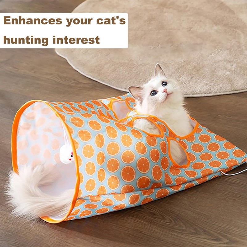 Great Fun Cat Toy: A simulated mouse and plush ball hanging on the tunnel to increase the fun of cat playing.The interactive cat toys appeal to the cat to hide, sta lk, pounce, and chase each other in it, encouraging healthy activity and bringing out your cat's natural hunting instinct.