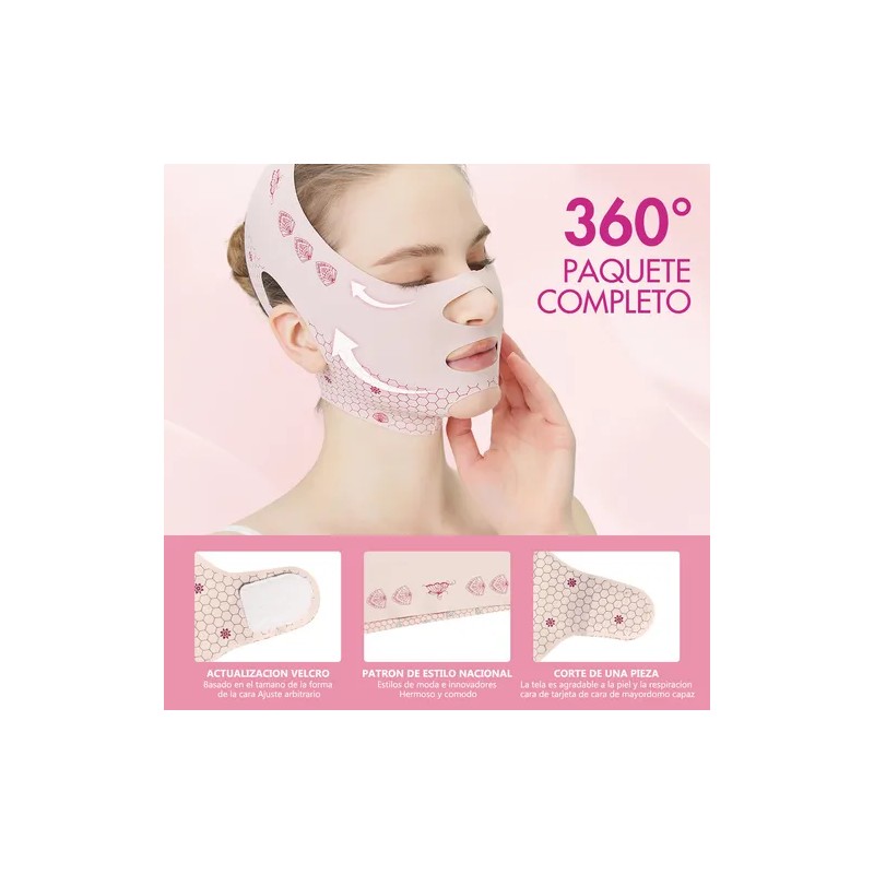 Línea V perfecta para el rostro: el lifting facial en línea V utiliza la fuerza física para dar forma al contorno del rostro. Nuestra correa de lifting facial está diseñada por expertos para combatir la papada y la flacidez de la piel, ofreciendo un lifting notable a los contornos faciales.