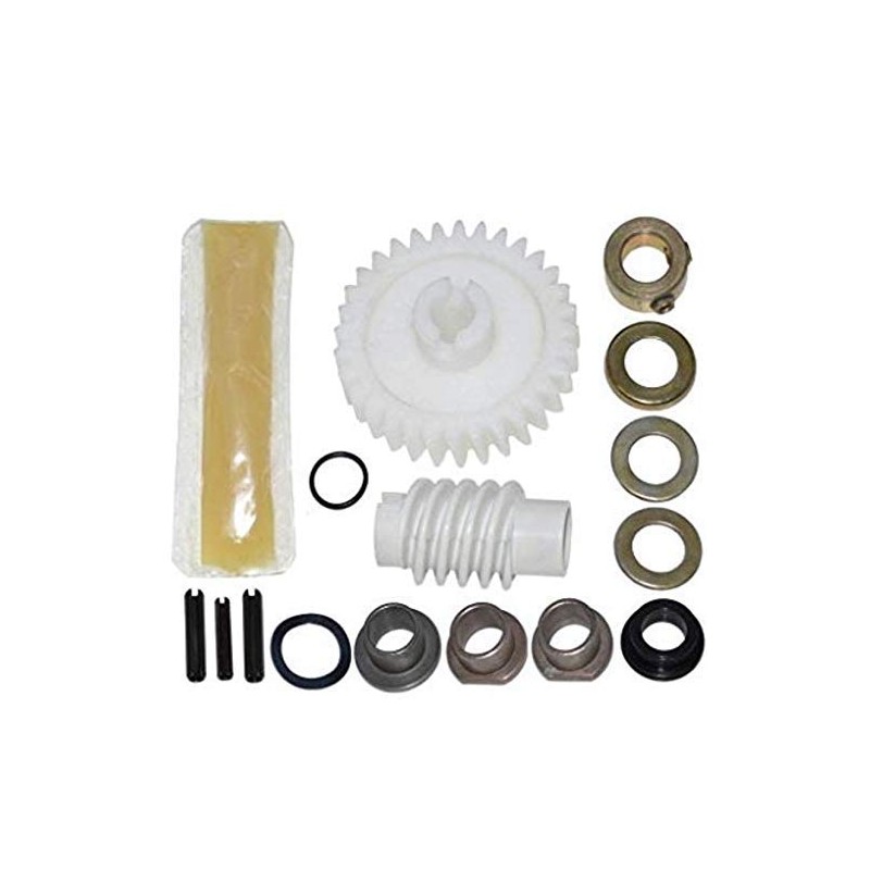 - Kit includes: Drive gear, worm gear, replacement bearings, and installation instructions