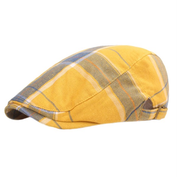 Lifup Unisex Flat Cap Checked Cotton Summer Flat Hat, yellow