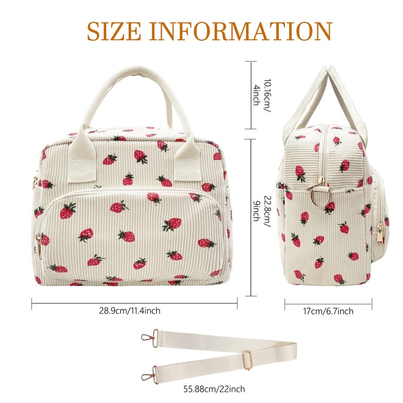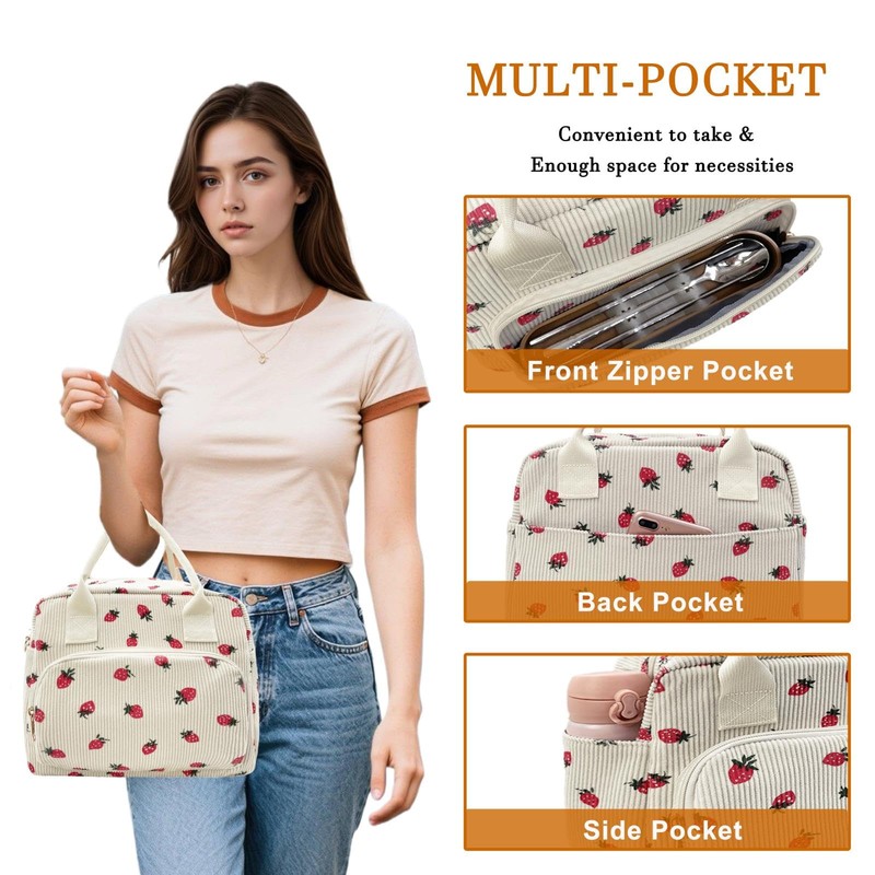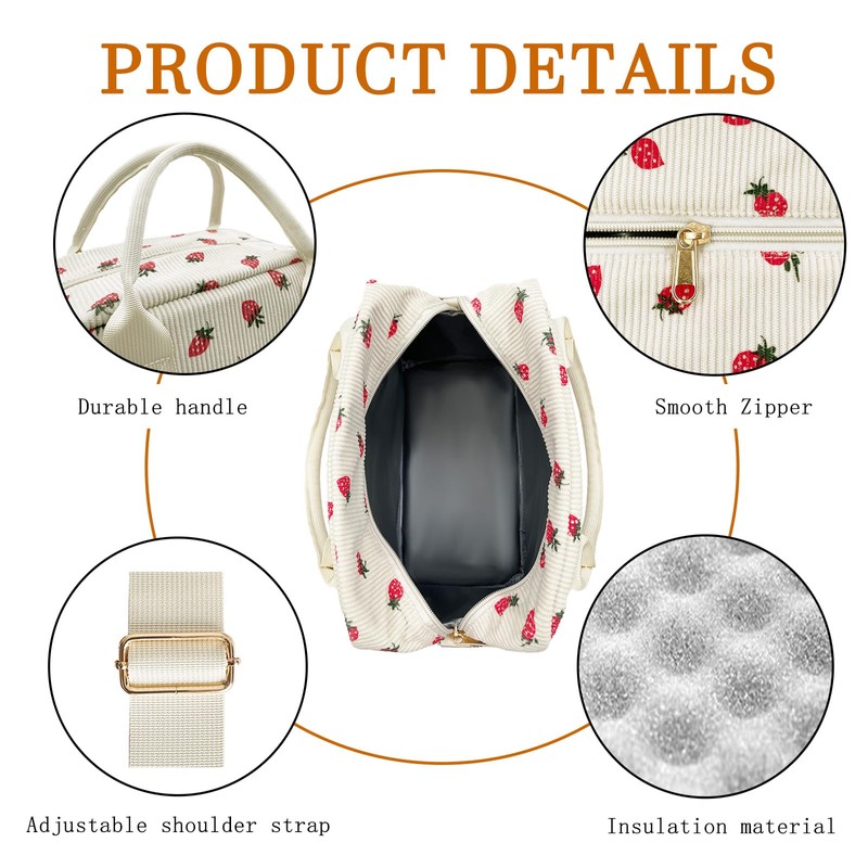 - Premium Materials: This corduroy lunch bag is made of thick thermal insulation materials on the inside and corduroy on the outside. It keeps your meals warm or cold for hours. The zip and shoulder strap buckles are made of metal, which is more durable for long-term use.