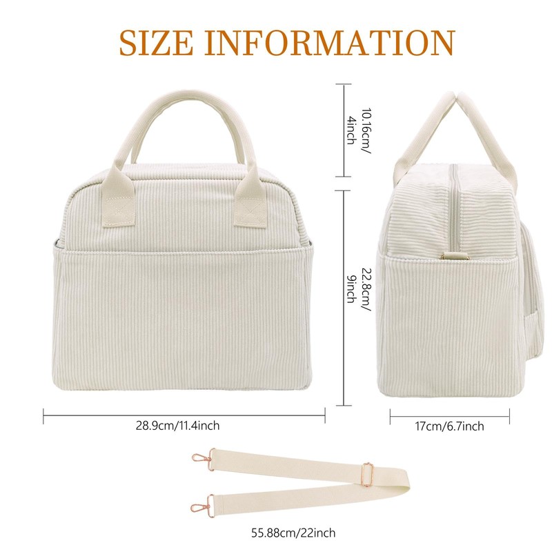 • Premium Materials: This corduroy lunch bag is made of thick thermal insulation materials on the inside and corduroy on the outside. It keeps your meals warm or cold for hours. The zip and shoulder strap buckles are made of metal, which is more durable for long-term use.