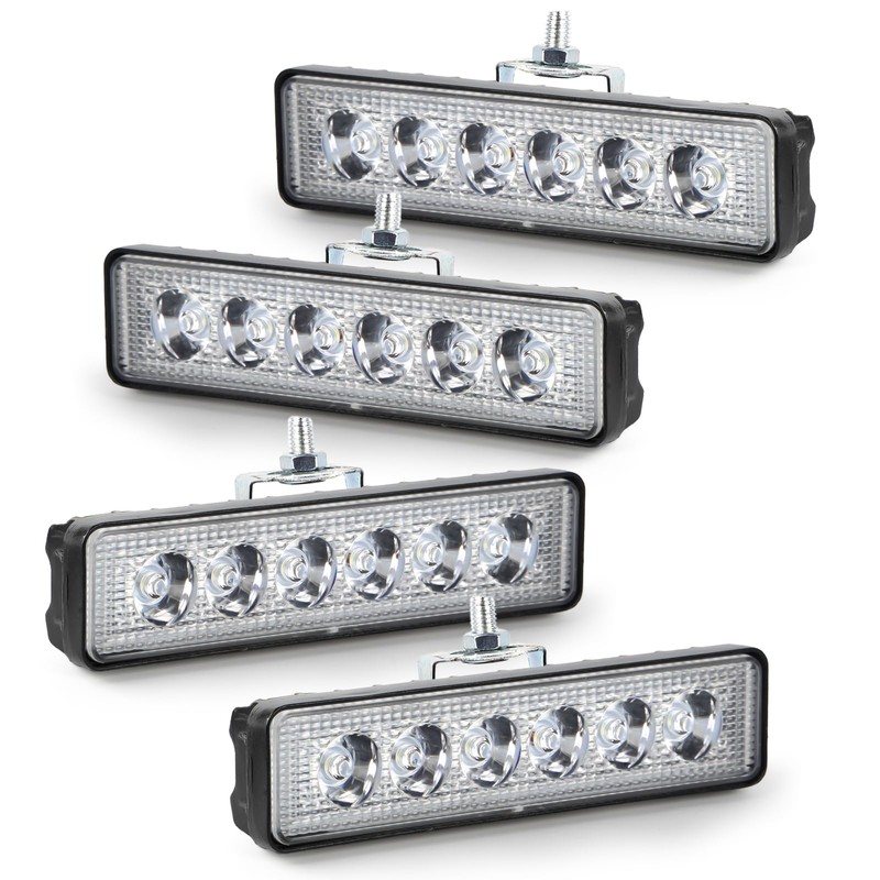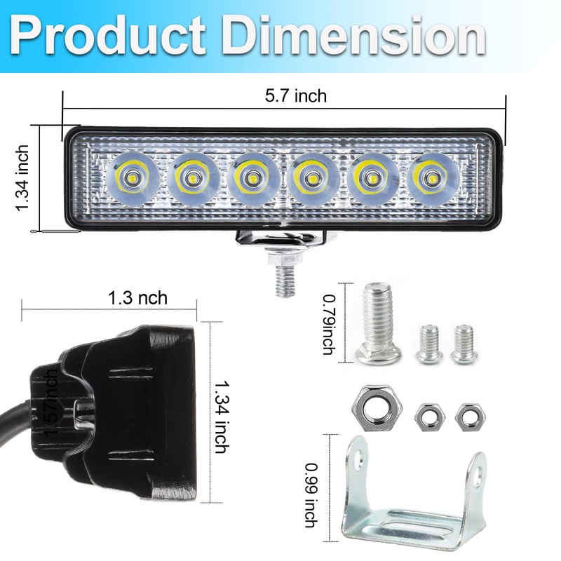 - High Efficiency LED Lighting System: LIGBT 5.7 inch light bars Equipped with 6 premium LED chips and optical grade lenses, each LED Pods delivers 1200 lumens (18W) of 6000K daylight white illumination, providing 50% brighter output than standard halogen lights for enhanced nighttime visibility