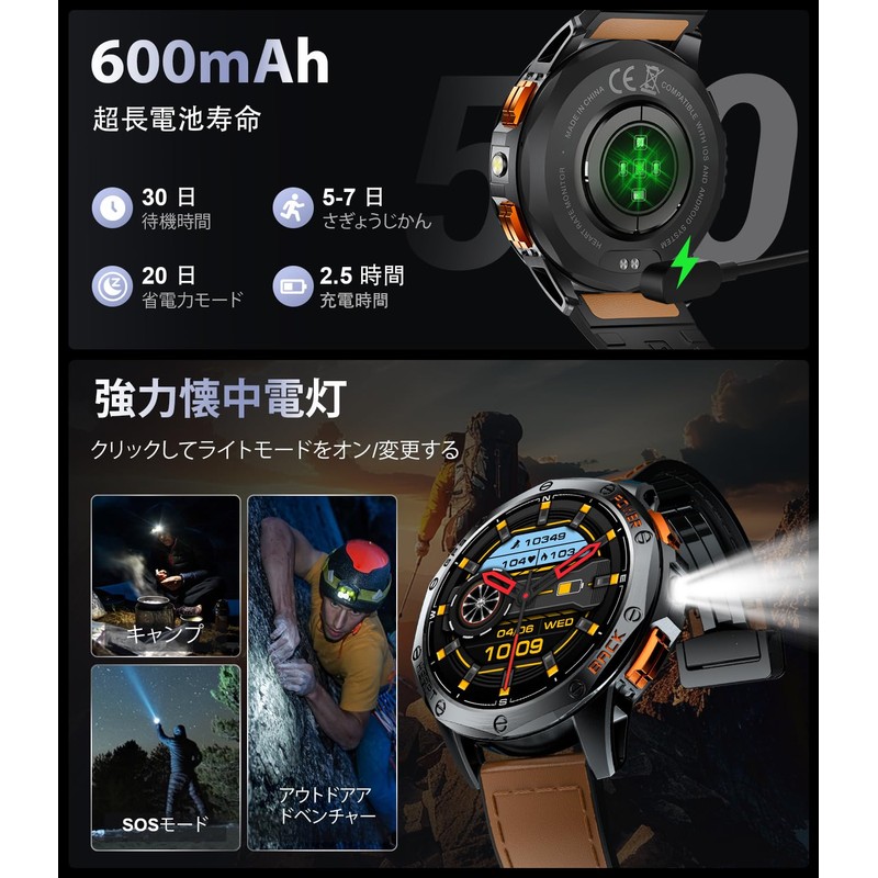 - Compass, GPS, LED Flashlight: This smart watch supports compass and satellite systems such as GPS, GLONASS, Beetel, Galileo, NAVIC, QZSS, etc., which accurately tracks courses and supports all your adventures in the outdoors. For outdoor enthusiasts, this function can increase safety and add more fun to outdoor activities. The smart watch for men has a powerful flashlight function suitable for various situations. Whether you're camping at night, searching for something or handling an emergency situation, the flashlight can provide enough lighting. (*Note: GPS route tracking must be activated in a large area. )