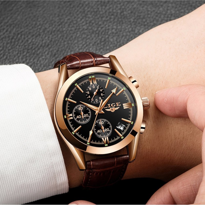 - Men Watch's Strap : LIGE mens watch equipped with soft , comfortable, breathable leather strap ,Watch band is equipped with an adjustable clasp so you can adjust the size to fit your wrist.