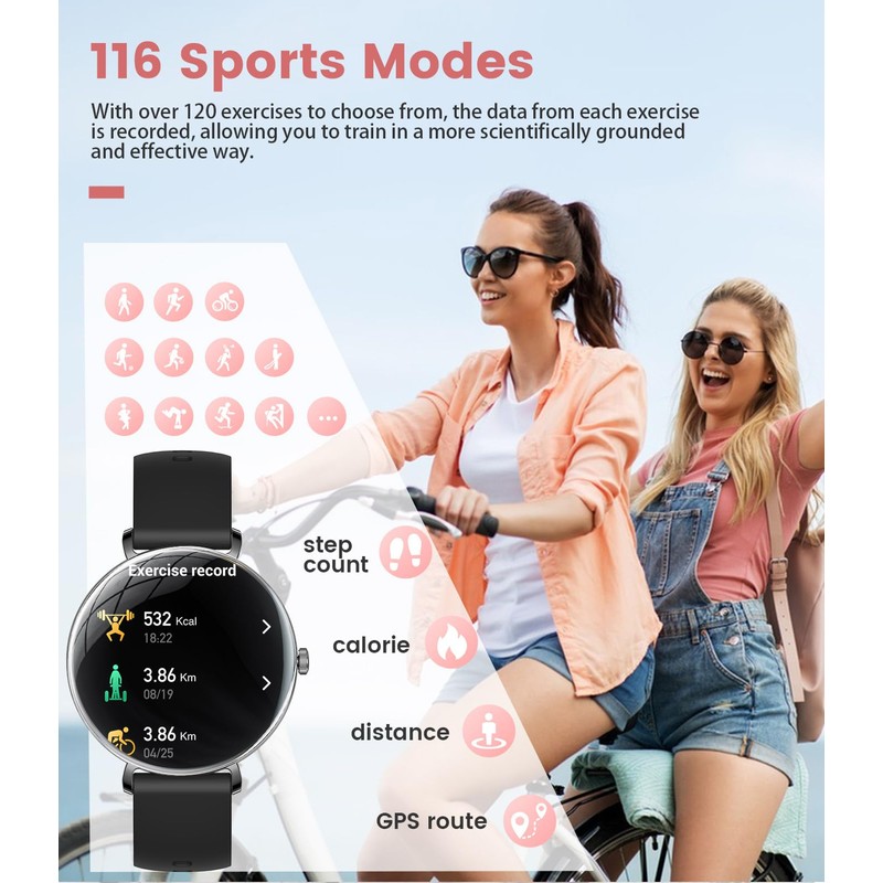 - 【Empowering Women's Health】Our women smart watch feature a built-in physiological cycle reminder, tracking menstrual and ovulation periods, and predicting your next cycle for better planning. Stay connected during pregnancy with pregnancy tracking. Additionally, High-performance optical sensors continuously track your heart rate and sleep quality, providing detailed data-based presentations for insightful analysis.