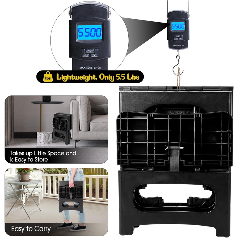 - Size and Load Capacity: Our folding step stool is measured 13"L×15"W×17"H,and can hold up to 300 pounds