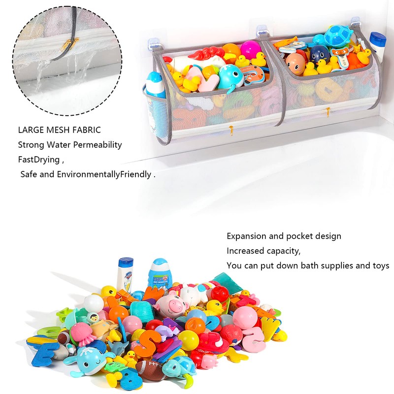 • Gran capacidad: con el aumento de la capacidad de la sala de almacenamiento de juguetes de baño, puede acomodar todos los juguetes de baño de bebé y mantener el baño limpio y ordenado