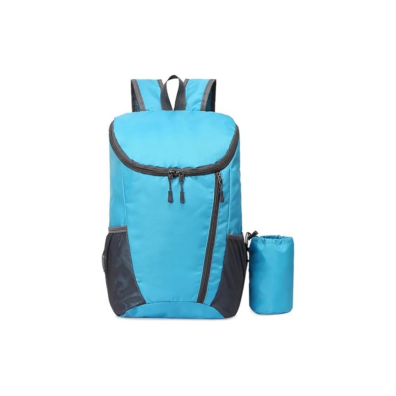 [潤木社] リュックサック 折りたたみ リュック 超軽量 大容量 人気 折り畳み 防水 耐久性 メンズ シンプルなデザイン アウトドア ハイキング 旅行用 男女兼用 かばん 収納袋付き (Light Blue)