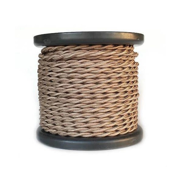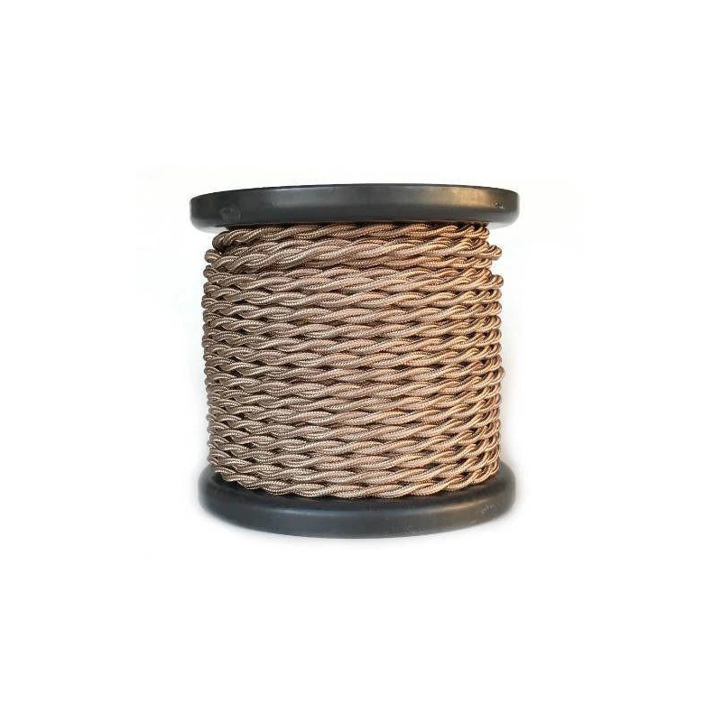 Light Brown Twisted Rayon Covered Wire, Antique Style Cloth Lamp Cord