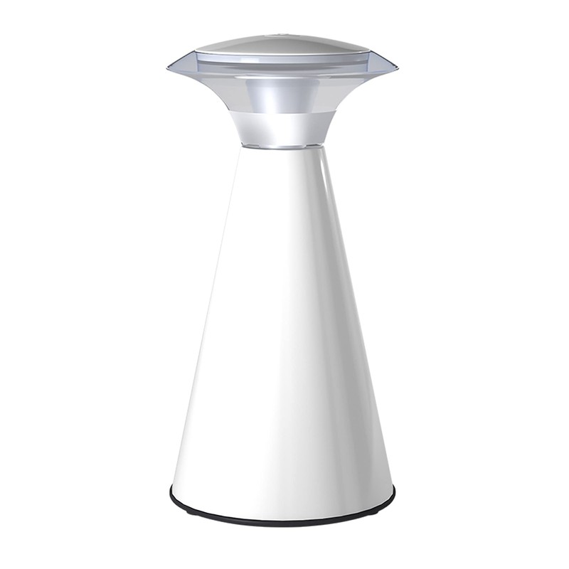 This stylish lamp is lightweight, durable and portable. It can be placed on a table or used as a handheld light. Touching a finger to the top of the light turns it on and off. Its compactness makes it ideal for traveling and camping.