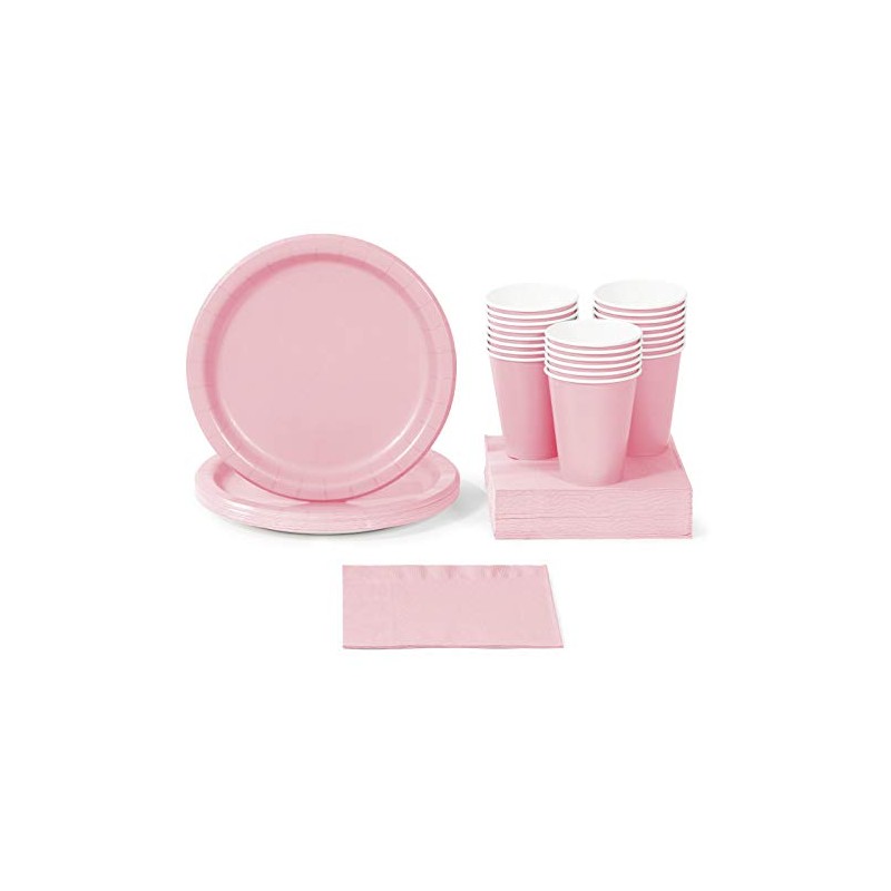 Light Pink Party Supplies, Bundle for 96 People Plates Napkins and Cups, Box ...