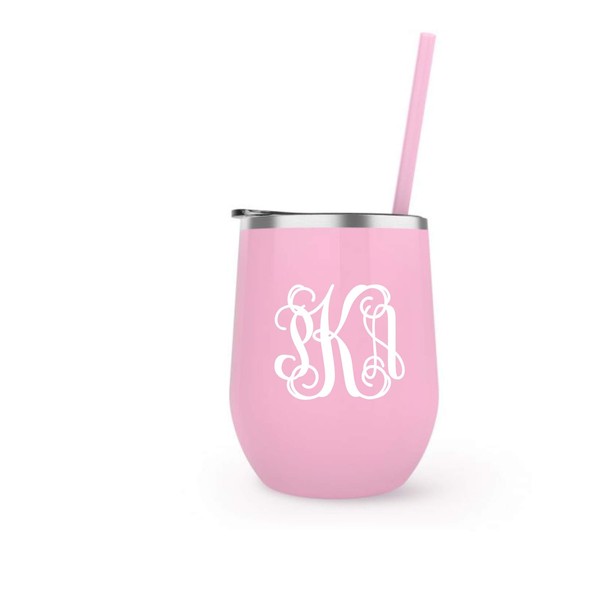 Light Pink Stemless Wine Steel Tumbler with Scroll Monogram