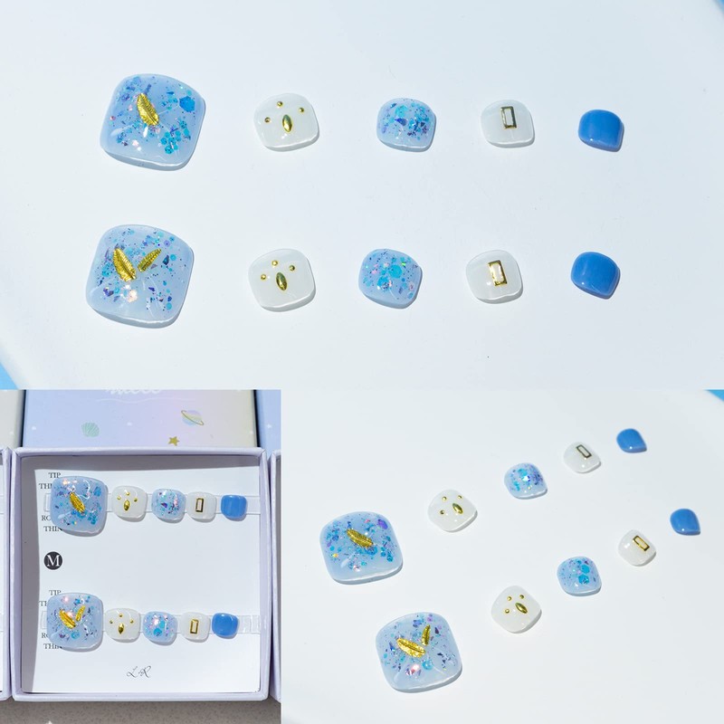 - Luxury -- Light Rain Press on toenails are 100% hand painted by our talented nail artist! The design of our press-on toenails are unique. We made them with love and inspiration. Hope they can aslo present a part of you.