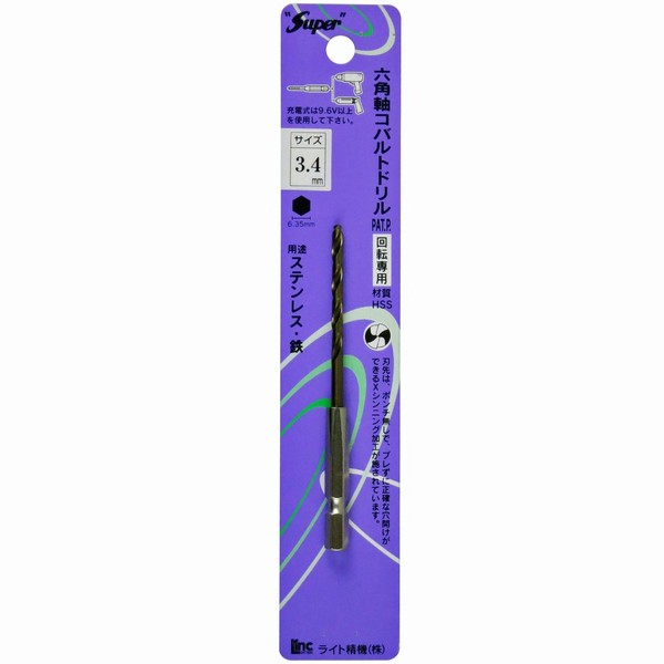 Light Seiki Super Hexagonal Shaft Cobalt Drill 0.1 inch (3.4 mm) (Metal/Metal)