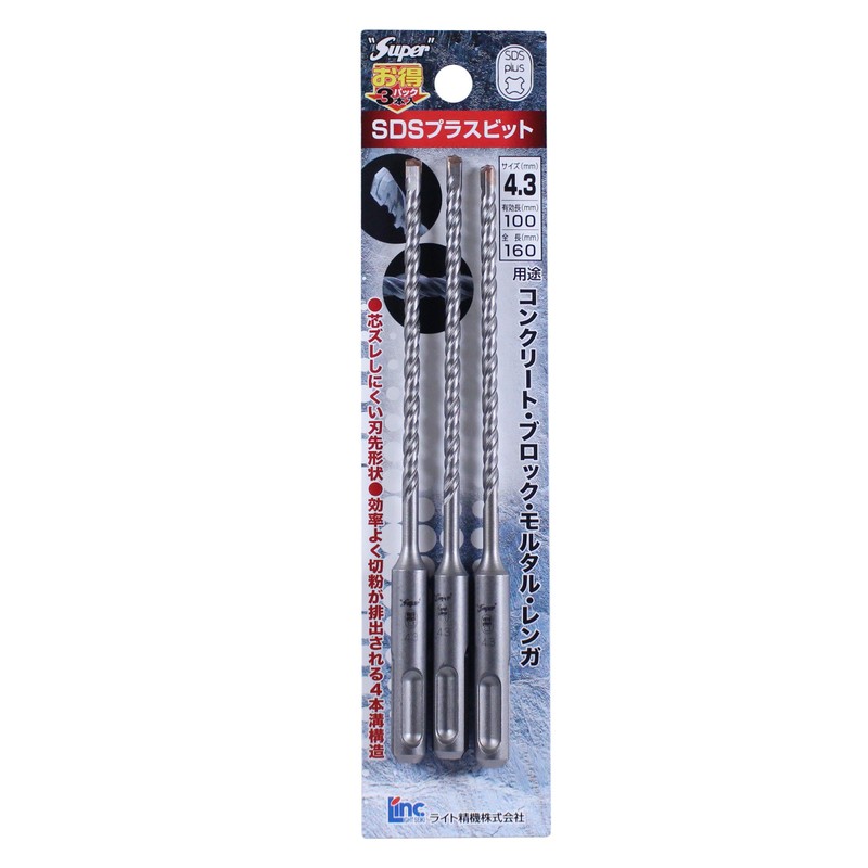 Light Seiki Super SDS Plus Bit 0.2 x 6.3 inches (4.3 x 160 mm), Set of 3