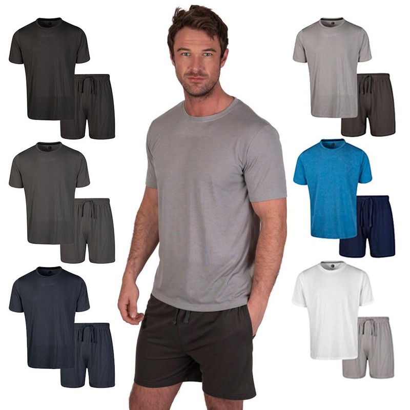Light & Shade Herren Pyjamahose und T-Shirt Set, Hellgrau meliert/anthrazit, M
