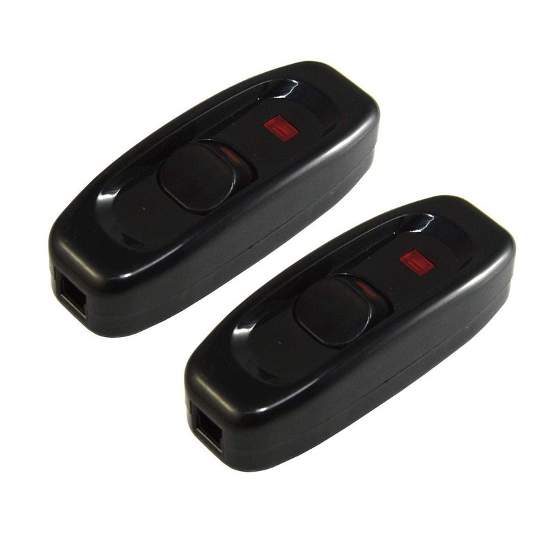 Light Switch, 2Pcs Appliance Switch ON/Off Inline Cord Switch with LED Indicator for Table Lamp Desk Light or Bed Lamp AC 250V 10A (Black)