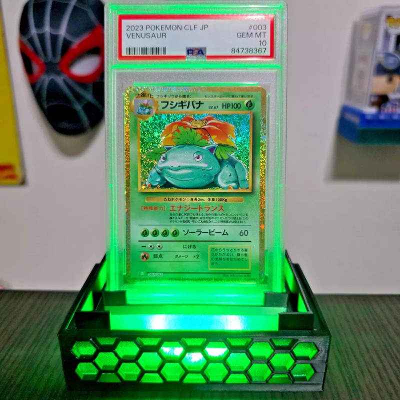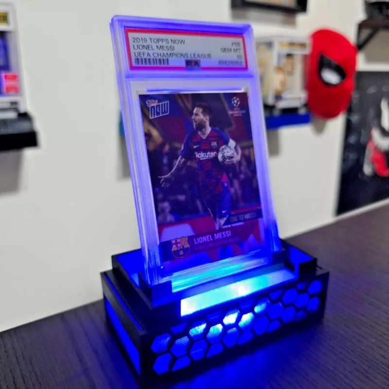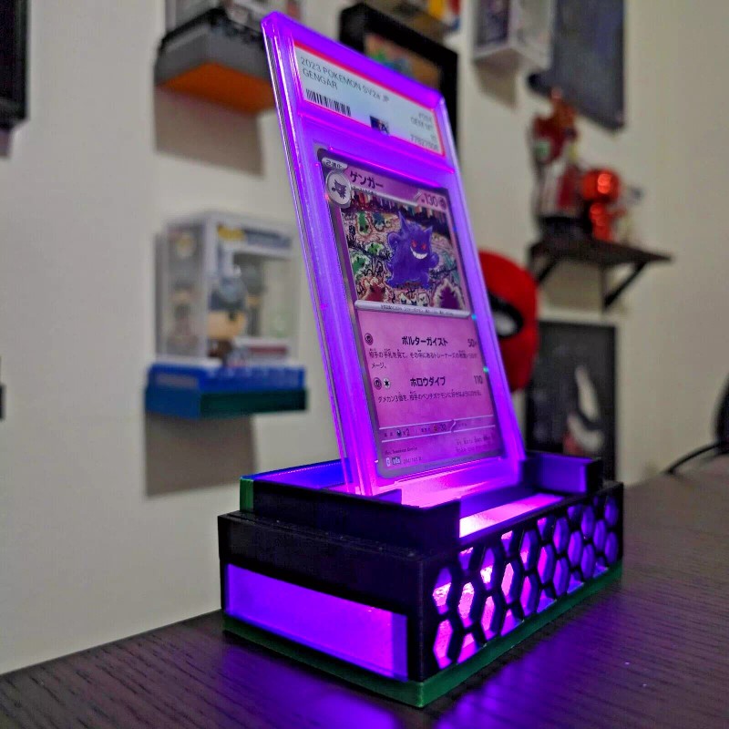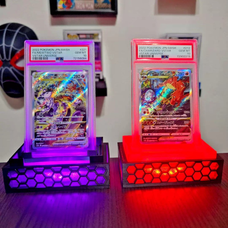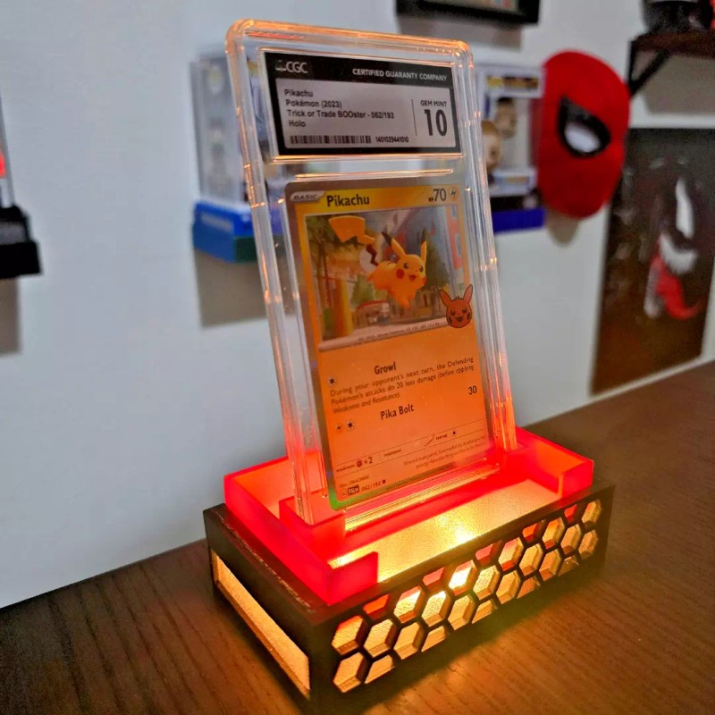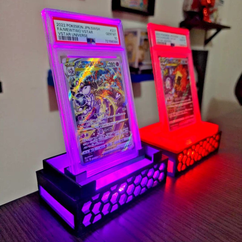Showcase your prized PSA & CGC graded cards! This premium stand elevates your collectibles with dynamic lighting effects, making them the centerpiece of any collection. Perfect for showcasing rare Pokémon, sports memorabilia, and top loaders in style!