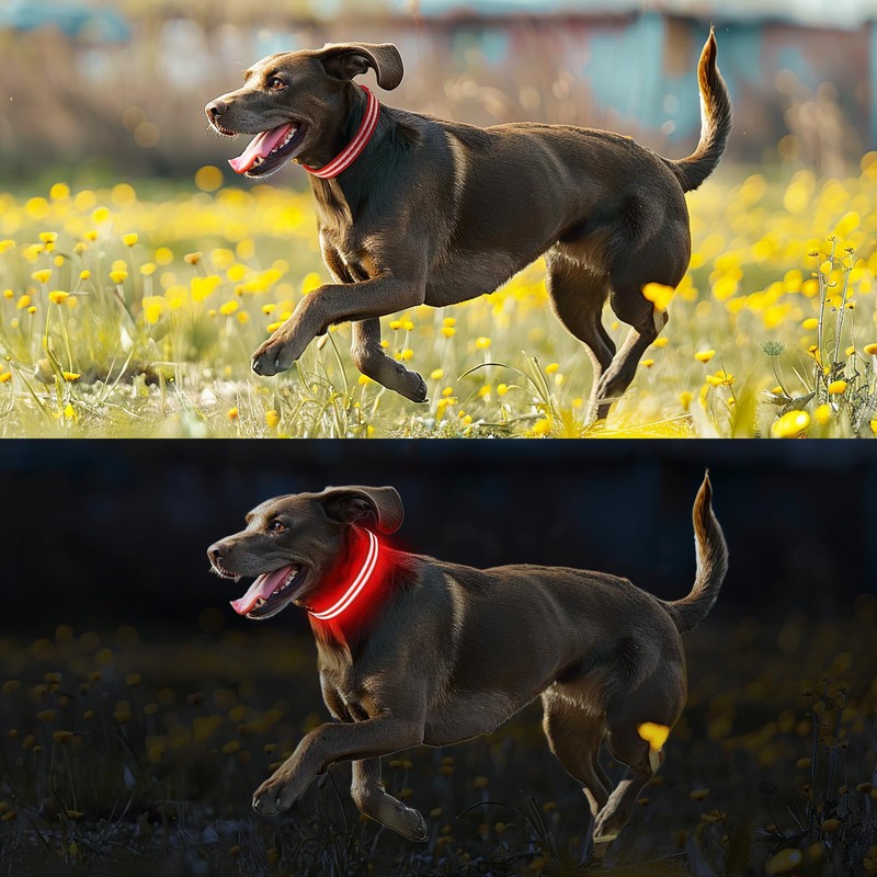 - High Visibility Light Up Dog Collar:Dual TPU Fiber Optic provides 360-degree illumination and visibility up to 1600 feet,protecting your dog from lost or vehicles while walking,Greatly improves your pet’s safety at night.