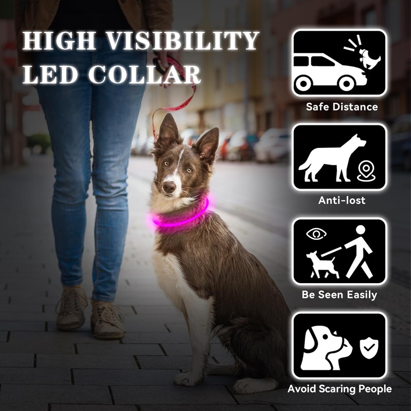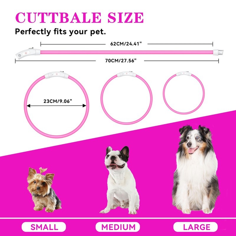 Light Up Dog Collar Led Dog Collar Rechargeable Waterproof, Glow in Dark Dog Collar, TPU Cuttable Lighted Dog Collars for Night Walking Charging USB, Safety Dog Collar for Small Medium Large Dogs Pink