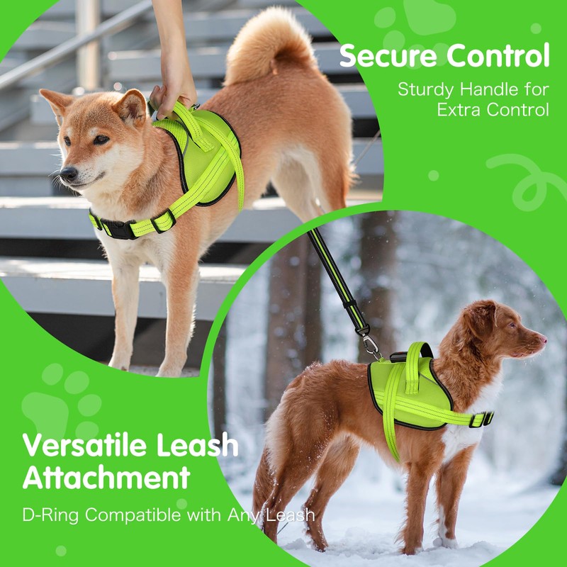 - INCREASED CONTROL WITH DURABLE NYLON HANDLE Our LED dog harness features a durable nylon handle that gives you extra control during walks, runs and hikes. This extra feature ensures that you can keep your dog close and safe in any situation, giving you a calming feeling and extra security with our LED dog harness with handle.