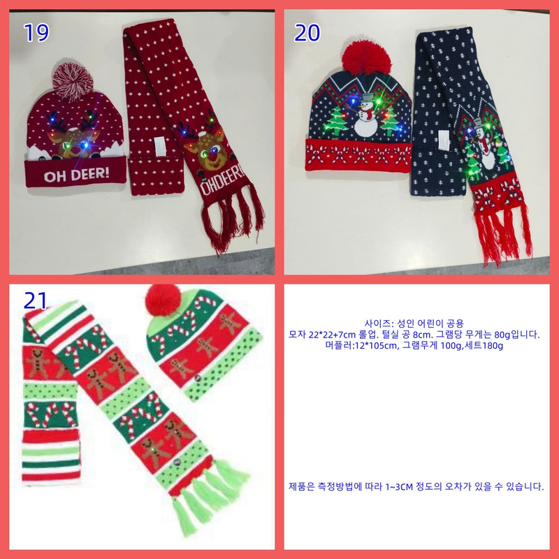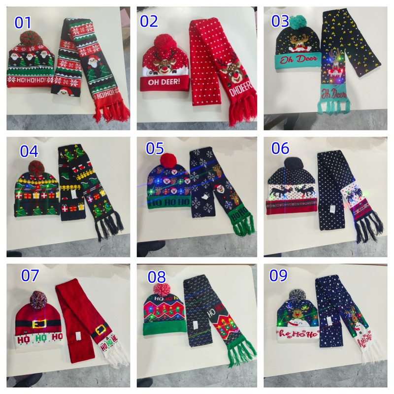 Light-Up Elk Jacquard Christmas Beanie Hat and Scarf Set Free Size/02 2ea