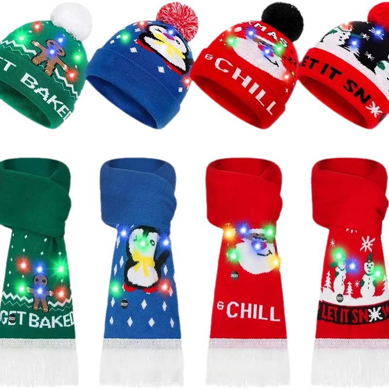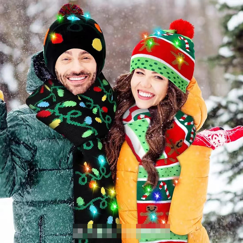 ✨ Illuminate your festive spirit with this unique light-up beanie and scarf set, perfect for holiday gatherings.