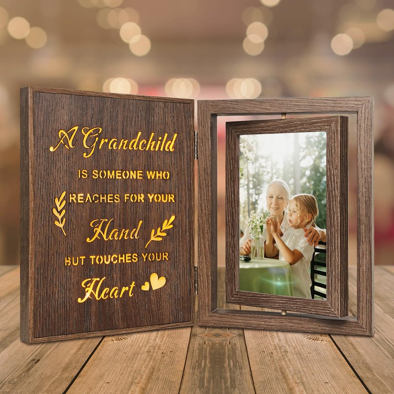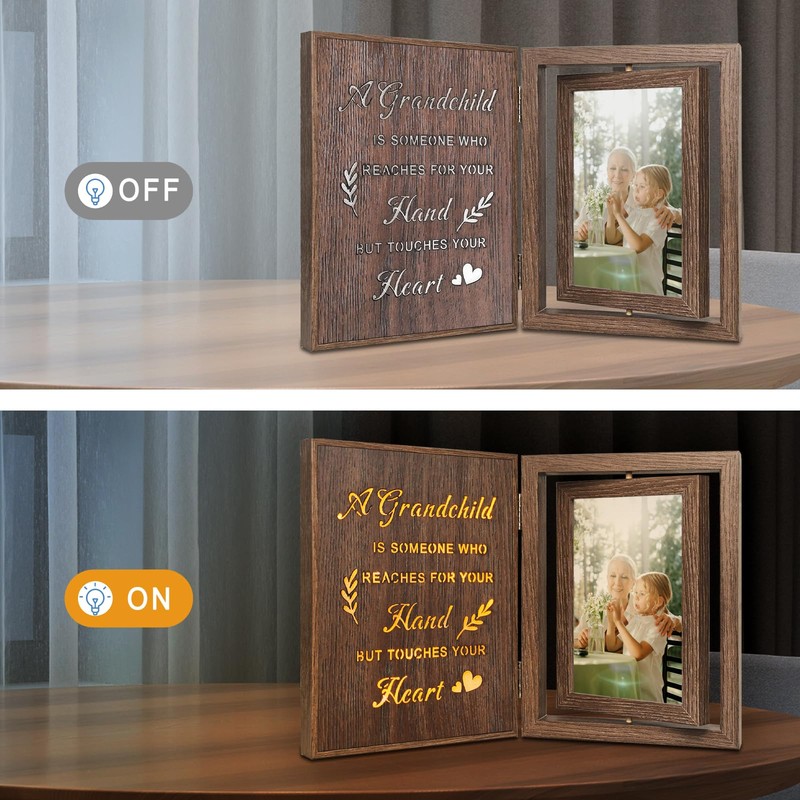 - Battery-Powered Glow, Batteries Not Included – No more struggling with wires; our frame's soft backlight highlights the words “A grandchild is someone who reaches for your hand but touches your heart,” touching hearts instantly