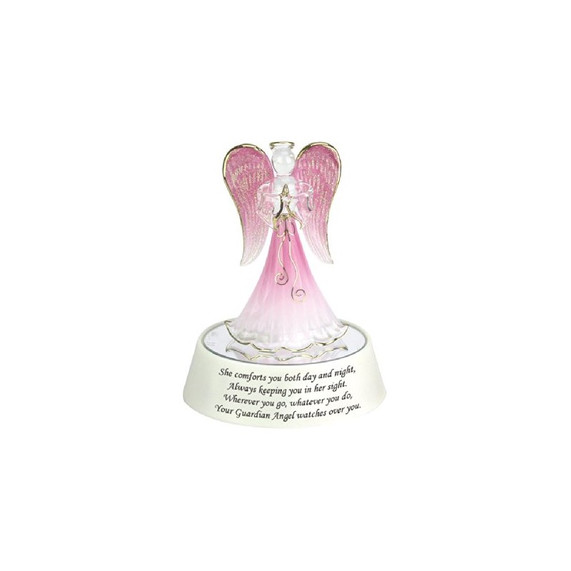 - A beautiful Light Up Guardian Angel in Pink Praying on a mirrored box