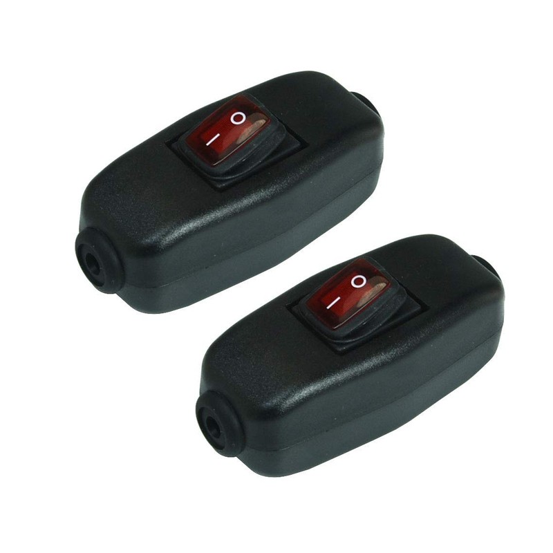 2Pcs Black Waterproof Switch with LED Indicator - ON/OFF Button Inline Cord Cable Switch for Table Lamp, Desk Light, Bed Lamp - AC 250V 6A