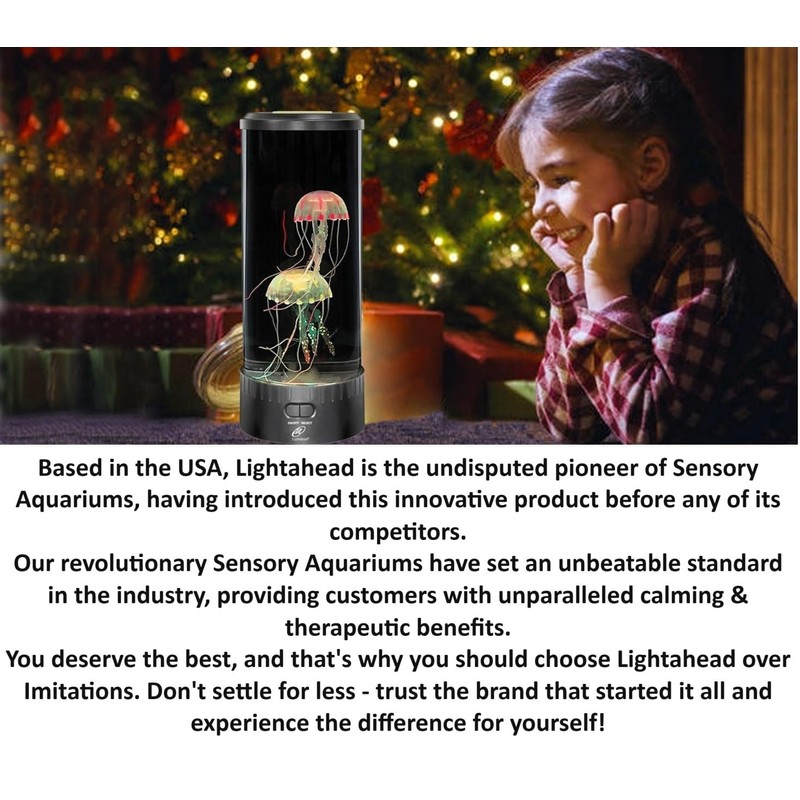 - THE ULTIMATE SENSORY STIMULATION JELLYFISH LAMP FROM LIGHTAHEAD PIONEERS IN AQUARIUM LAMPS: The quiet movement of realistic life like Jellyfish in the tank with fascinating color changing lights create a beautiful Tranquil, peaceful & soothing deep-sea ambiance which could help reduce stress & anxiety. Great for children, adults & seniors with special needs, including dementia ADHD & autism. May helps improve mood & well-being.