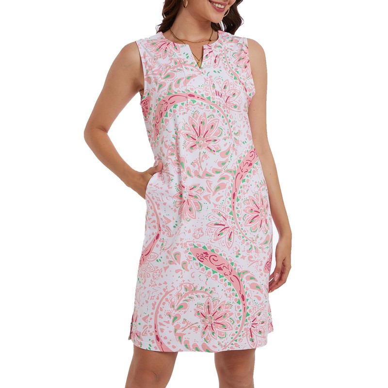 Lightbare Womens UPF 50+ Casual Sundress Sleeveless Tank Dress Notch Neck Summer Floral Dresses with Pockets Loose Fit